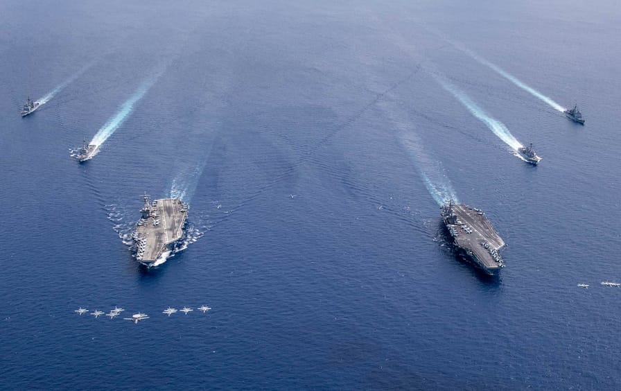 By far the greatest demonstration of Washington’s war-making capacity, however, is the multi-carrier operation now under way. With each carrier capable of launching 60-plus warplanes, and their accompanying vessels armed with multiple Tomahawk land-attack cruise missiles, the combined force poses a massive threat to China. As noted by RAdm. James Kirk, commander of the Nimitz strike group, “Our operations demonstrate the resilience and readiness of our naval force and are a powerful message of our commitment to regional security and stability as we protect critically important rights, freedoms, and lawful uses of the sea.”