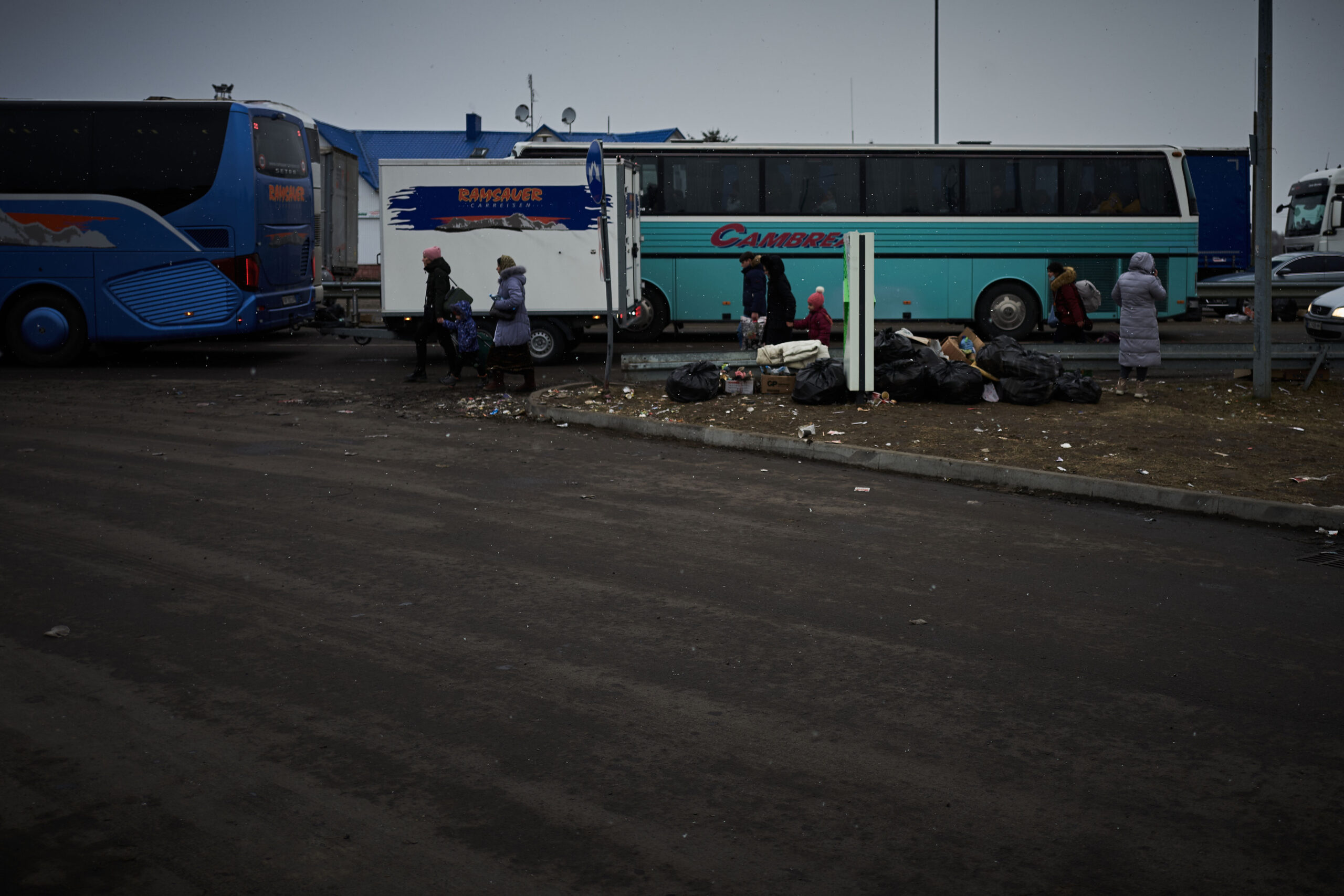 The journey is getting longer as more people flee and both Ukraine and Poland’s infrastructures creak under the weight of people heaving over the border. In rail stations in Ukraine, there are reports of overcrowded trains and stampedes. In Poland, volunteers whisper that women and children are being targeted by human traffickers. “It’s their specialty here,” mutters a Lebanese aid worker who has been at other camps, other crises around the world. “Normally, in other places, it would take several months for something like this to happen, but here it happened in 10 days. I almost got into a fight with someone over this today.” The hotels at the border are booked solid. In some places, volunteers and refugees vie for rooms.