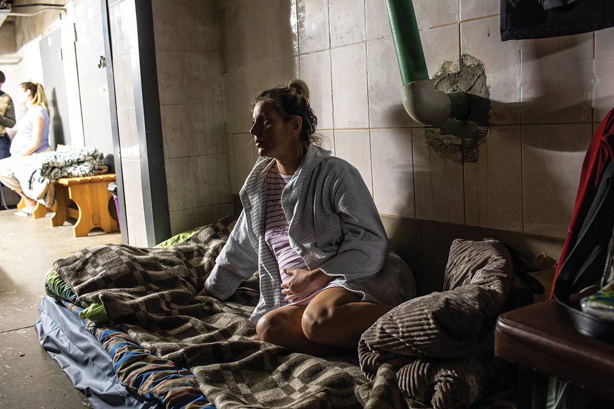 While Nastia labors, doctors and nurses tend to two dozen patients at the maternity ward of Kharkiv Hospital No. 25, less than 20 miles from the Russian border. Down the hall, 39-year-old Iryna consults with her doctor about methods to prevent a preterm birth due to her cervix shortening at 30 weeks’ gestation. “We turn on calm music very loudly” at night to drown out the sounds of war, says Iryna, who lives with her husband and their three children. Elsewhere, new mom and soldier Olena cradles her daughter Sofiia after an emergency cesarean—performed after Olena developed preeclampsia. Her doctor notes that they’ll keep her in the ward for another three days, to give her incision time to heal before sending her home. Mothers in her condition receive home visits from UNICEF-supported nurses around the country.