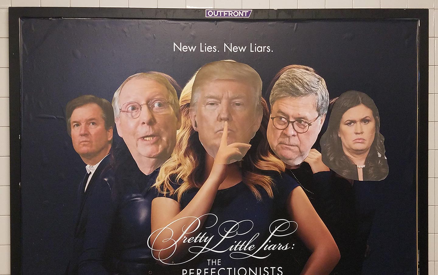 Enhanced advertisement, author unknown (photographed at the Eastern Parkway/Brooklyn Museum subway station, NYC, May 2019.)