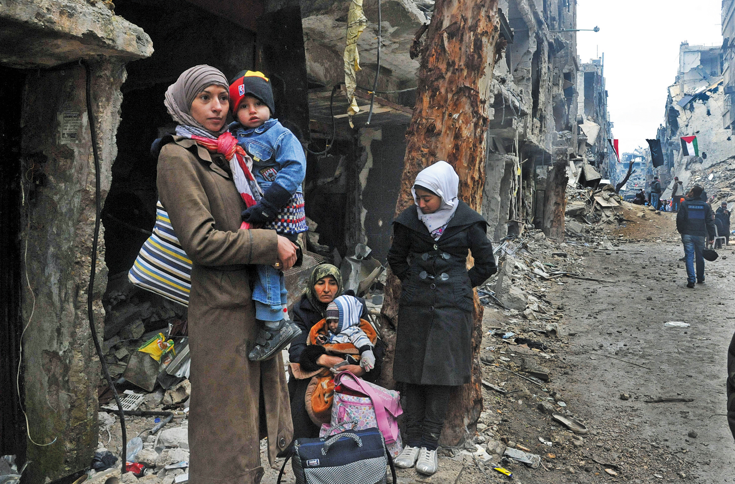 Residents prepare to leave the besieged Palestinian refugee camp of Yarmouk, on the outskirts of Damascus, on February 4. Tens of thousands of Palestinians—who were either expelled from or are the descendants of those expelled from their original homes in 1948 and 1967—have now fled Syria’s civil war.