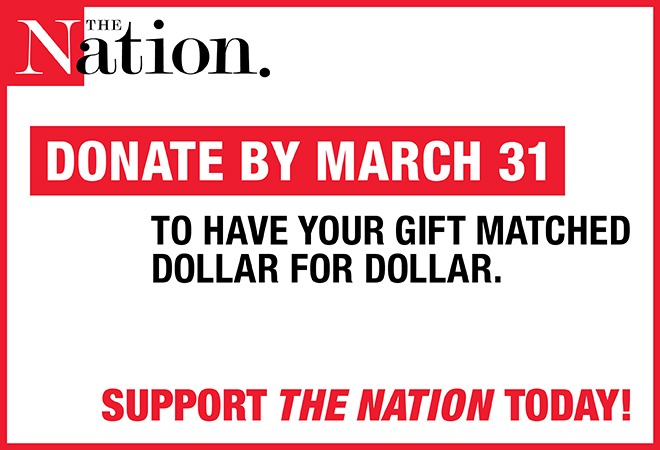 The Nation is raising $50,000 to ensure that we have the resources for reporting and analysis that sets the record straight and empowers people of conscience to organize. Donate by March 31 to have your gift matched dollar for dollar.