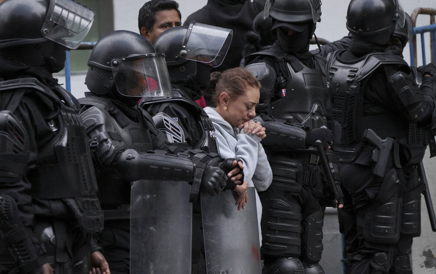 A supporter of former Ecuadorean Vice President Jorge Glas stands outside the detention center where he was taken after police broke into the Mexican Embassy to arrest him, in Quito, Ecuador, April 6, 2024.