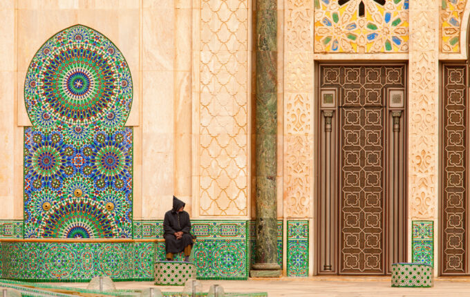 - Begin with a visit to the Hassan II Mosque. This flamboyant building was built at enormous expense to commemorate the former king’s 60th birthday. Set on an outcrop jutting over the ocean and with a 210m-tall minaret that serves as the city’s major landmark, it is a showcase of the very best Moroccan artisanship: hand-carved stone and wood, intricate marble flooring and inlay, gilded cedar ceilings and exquisite zellij (colorful ceramic tiling) abound. The mosque is commonly thought to be the world’s third- largest mosque after those in Mecca and Medina, and can accommodate 25,000 worshippers.